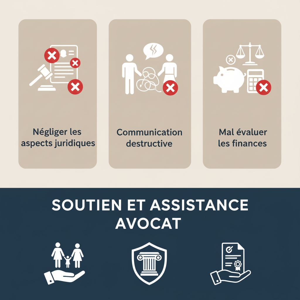 L’une des plus coûteuses et angoissantes erreurs à ne pas faire en cas de divorce réside dans une mauvaise anticipation de la procédure, avec un impact financier et patrimonial considérable. L’accompagnement d’un avocat spécialisé prend toute son importance pour protéger vos intérêts.